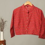 elegance to your wardrobe with this handcrafted block print cotton Designed with intricate floral motifs on a soft beige base, this top is perfect for casual outings, office wear, or ethnic styling. The long sleeves with contrasting red printed cuffs bring a unique charm, blending traditional artistry with modern comfort.